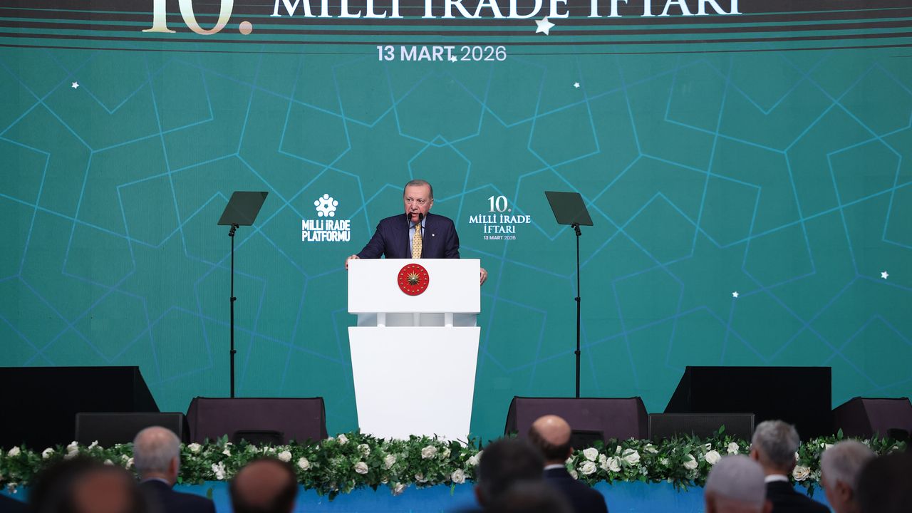 10’UNCU Milli İrade Platformu iftar programında konuşan Cumhurbaşkanı Erdoğan, “Biz hükümet olarak ülkemizi savaşın içine çekmek isteyen tertip, tuzak ve tahriklere karşı çok dikkatli hareket ediyoruz. Olayların sadece görünen kısmına değil, asıl perdenin arkasında gizlenen kısmına odaklanıyor; hiçbir ihtimali, hiçbir senaryoyu dışlamıyor, her şeyi en ince detayına kadar tahlil ve tetkik ediyoruz. Bu süreçte, dün gece olduğu gibi hava sahamızı ihlal eden her türlü tehdide yönelik gerekli önleme faaliyetlerinde de bulunuyoruz. Türkiye’nin binlerce yıllık kadim devlet aklı ve hükümetimizin 23 yıllık kriz yönetim tecrübesi, çevremizdeki karmaşık hadiseleri okuma, anlama, bunlara doğru ve ölçülü tepkiler vermede en büyük kılavuzumuzdur. Ülkemizi bu ateş çukurundan uzakta tutmak birinci önceliğimizdir. Sizlerden de İran’a saldırılarla eş zamanlı olarak köpürtülen mezhep ve etnik köken temelli kışkırtmalara karşı çok dikkatli olmanızı istiyorum” dedi.